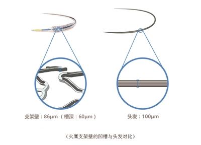 怎样把药物完美地“保存”在支架上?经过反复设计和比较,火鹰研发团队历时15年,选择并达成了技术上最难实现的一种方案——微槽包裹药物,即在金属支架表面用激光刻槽,再把药物灌入槽内。
